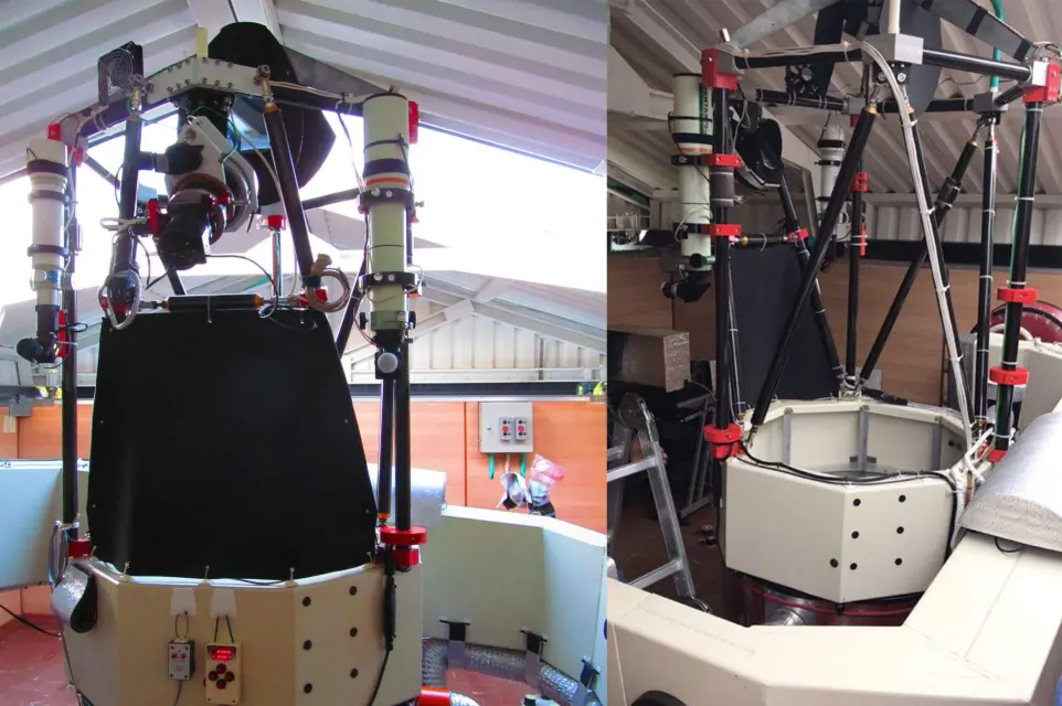 La verdadera prueba de fuego llegó cuando León decidió cambiar el telescopio principal en 2002-2003. Su visión era construir algo mucho más grande: un Newton Galaxy Optics de 25" f/4 , que es el equipo actual del observatorio.